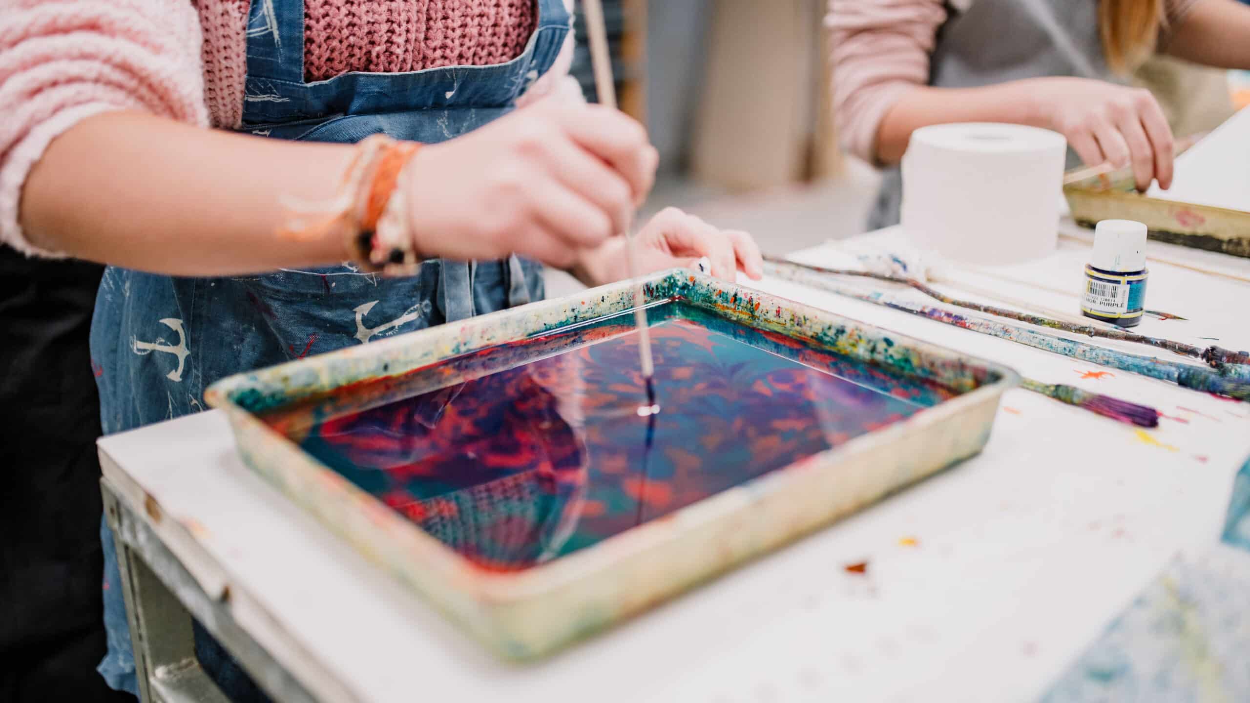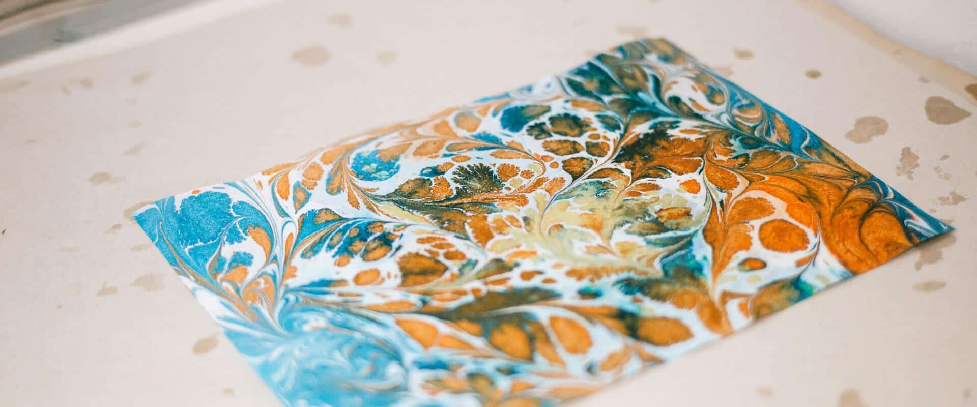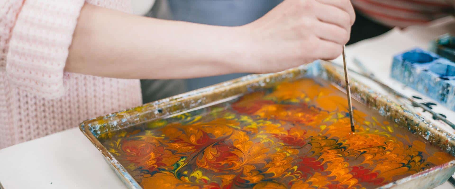 Brightly colored paper created in TYPA's marbling workshop