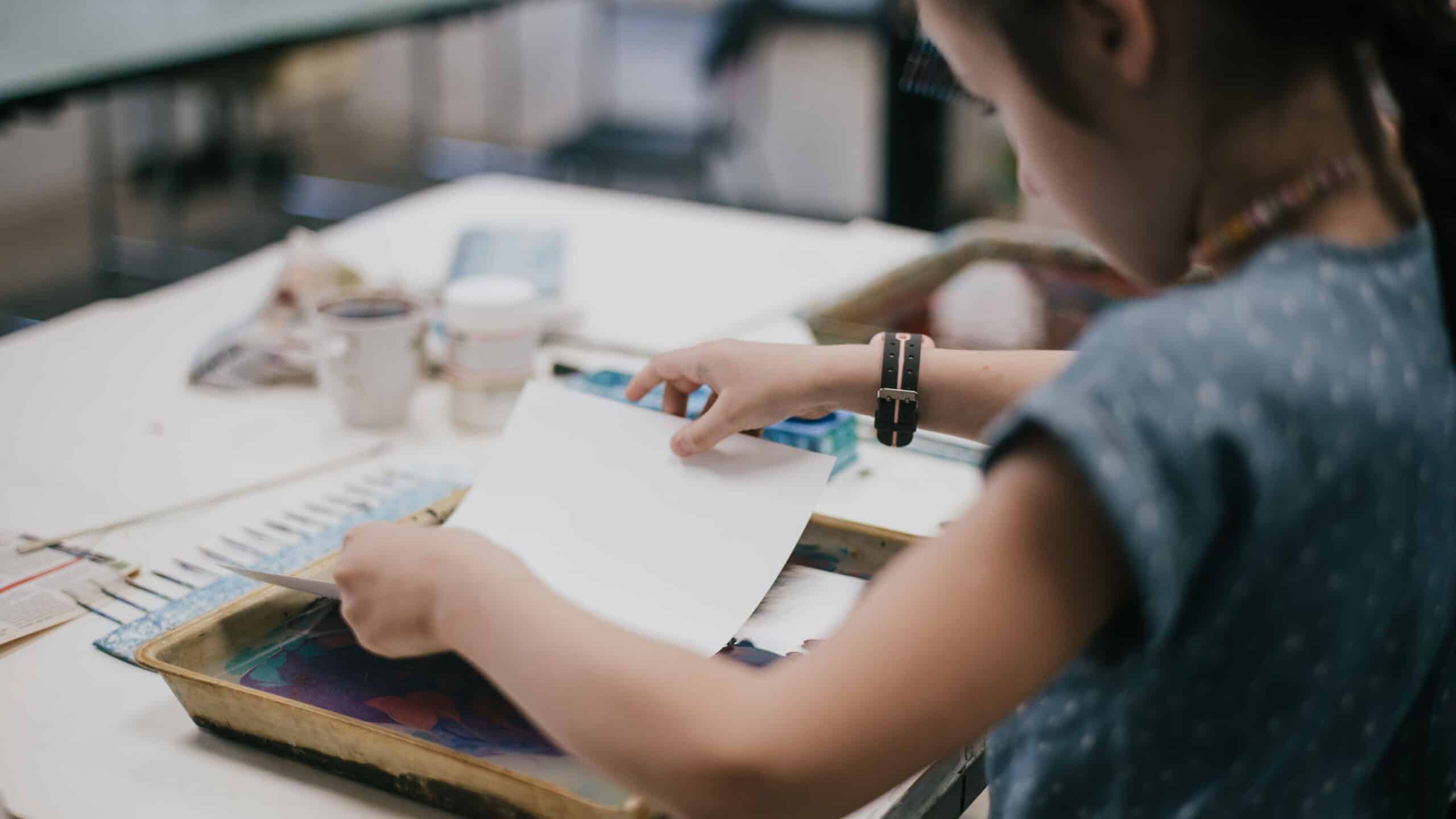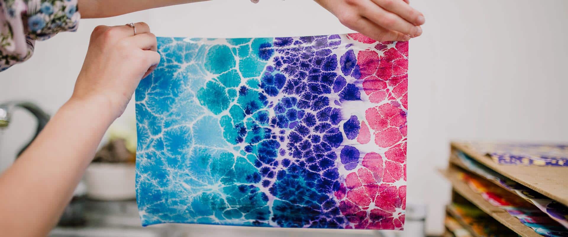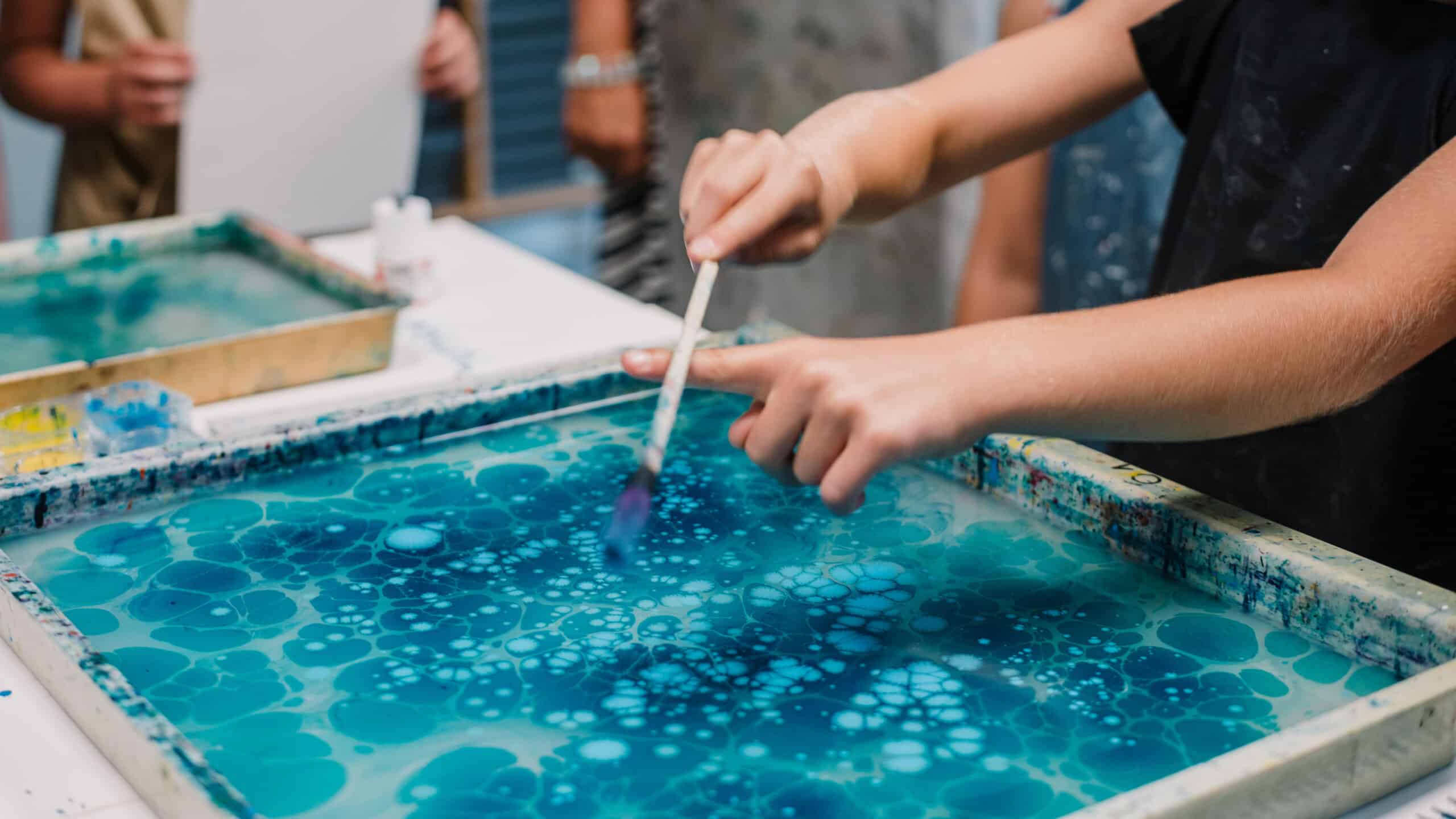 Brightly colored paper created in TYPA's marbling workshop