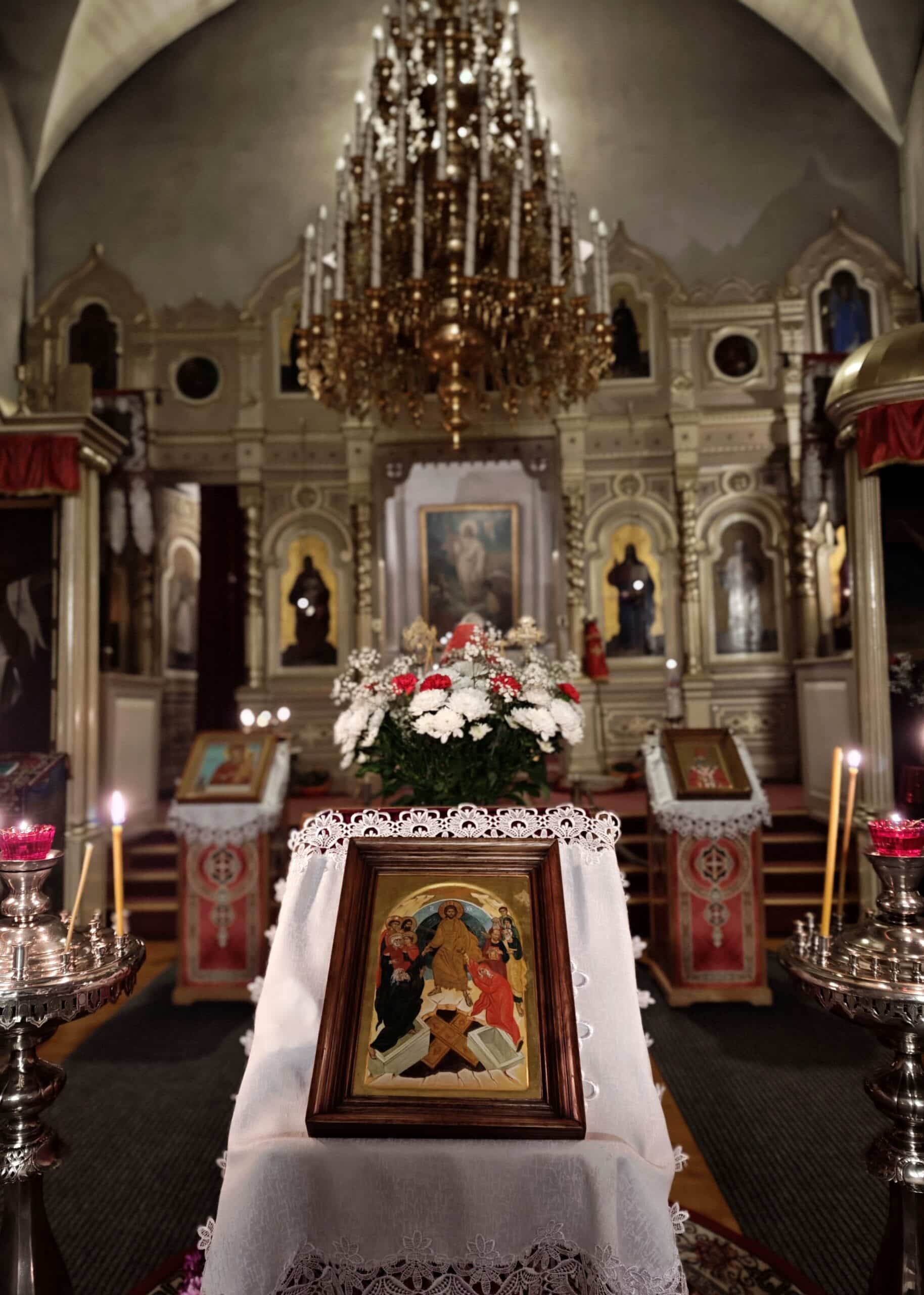 Kiriku fassaad on kaunistatud traditsioonilise õigeusu sümboolikaga ja seespoolt on kirik kaunistatud ikoonidega, mis kujutavad erinevaid pühakuid.