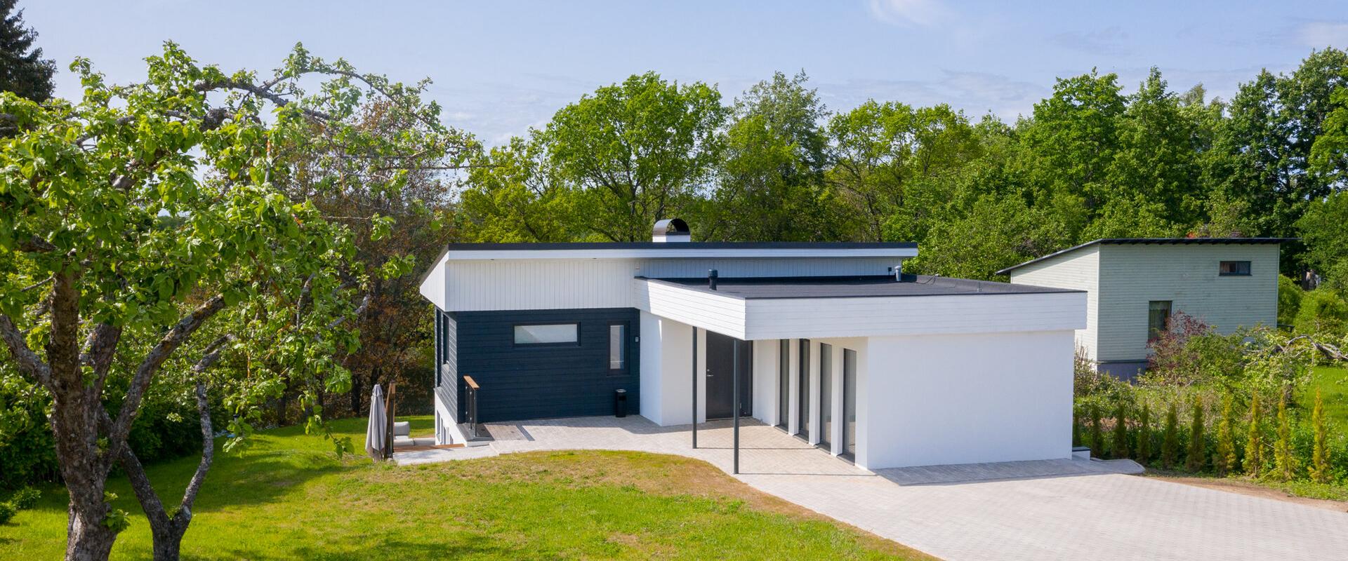 Vacation in Kalda Villa is pure pleasure! Swim in the heated outdoor pool or Lake Kitseküla, enjoy sauna pleasures and a morning coffee on the balcony or terrace! The villa is located on a relief landscape, which adds a special feature to the house. We are open all year round, offering accommodation for up to eight people. On the entrance floor, there are 2 bedrooms and a master bedroom with a spacious walk-in wardrobe, with floor-to-ceiling windows adding openness; living-room with access to the balcony; open kitchen with modern kitchen appliances; shower room-toilet, and a hall.On the lower floor there are: sauna and shower room, toilet, utility room, and recreational area with access to the terrace.