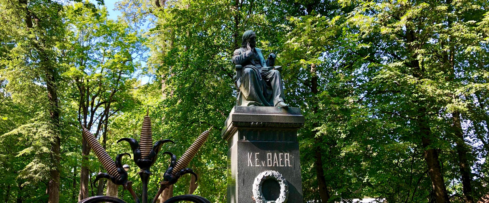 The statue of Karl Ernst von Baer was completed in 1886, its author is M. Opeku.