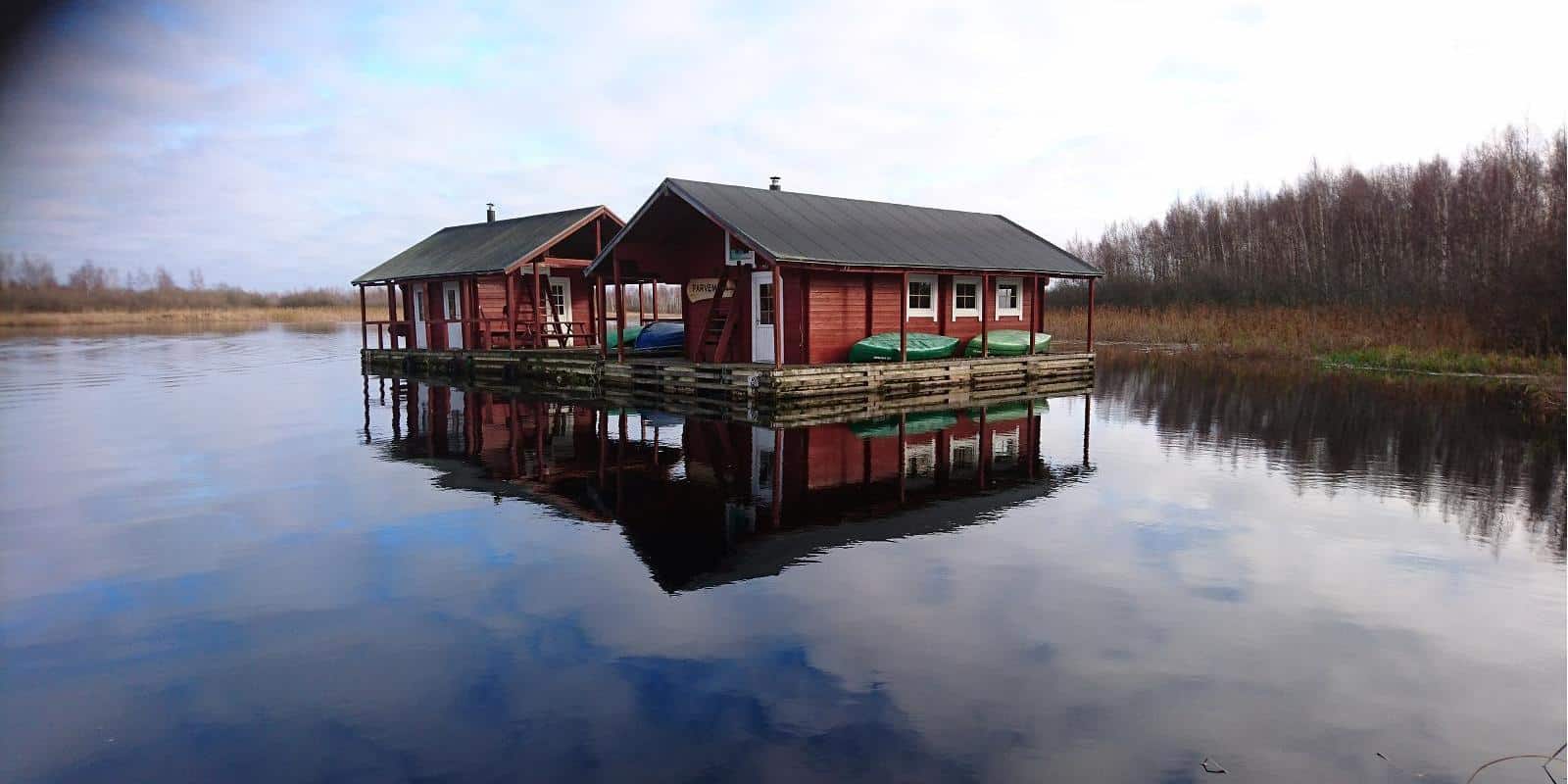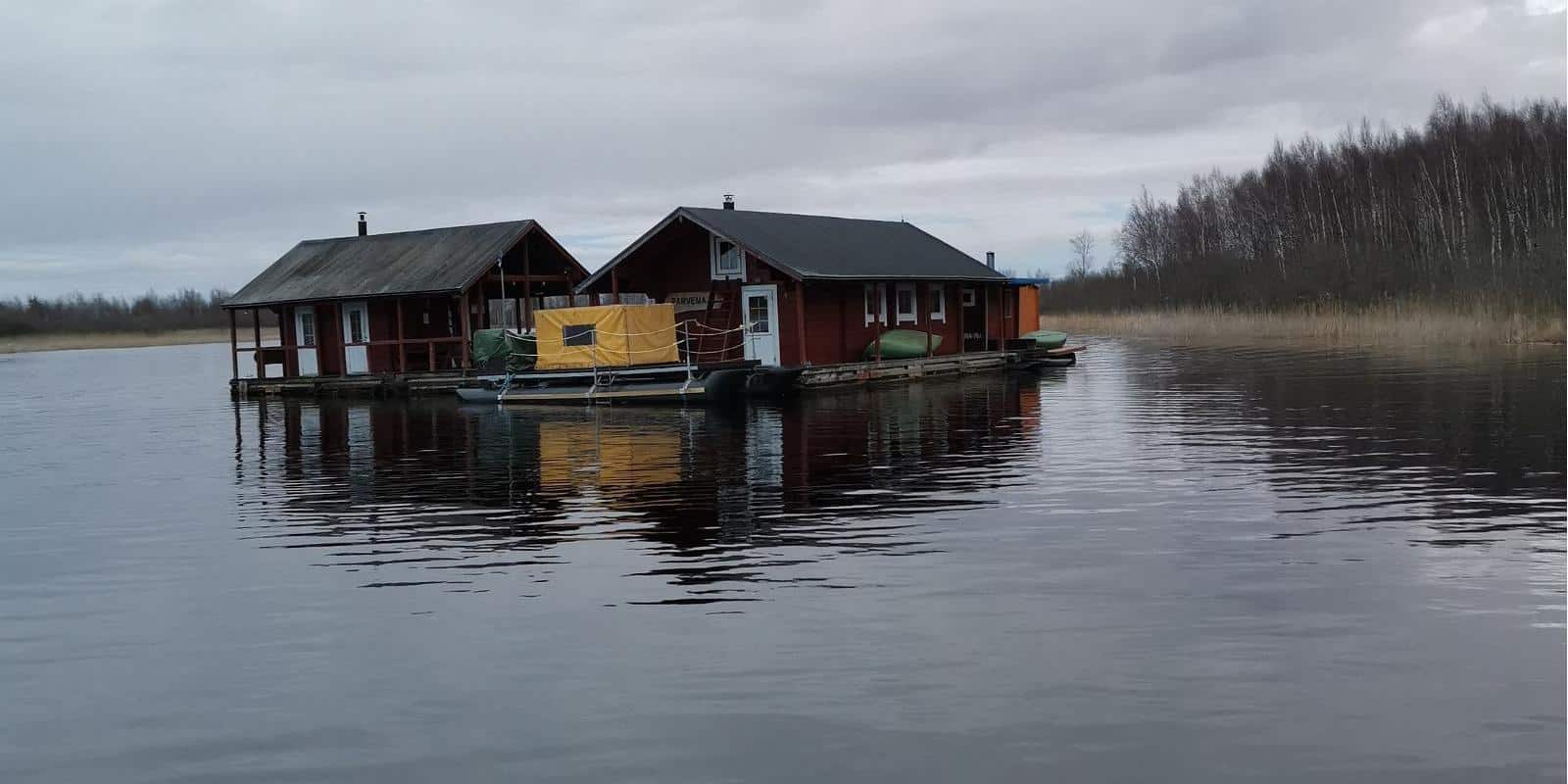 A unique floating house in the middle of the Kalli River is waiting for you – away from civilization and only accessible by water!
