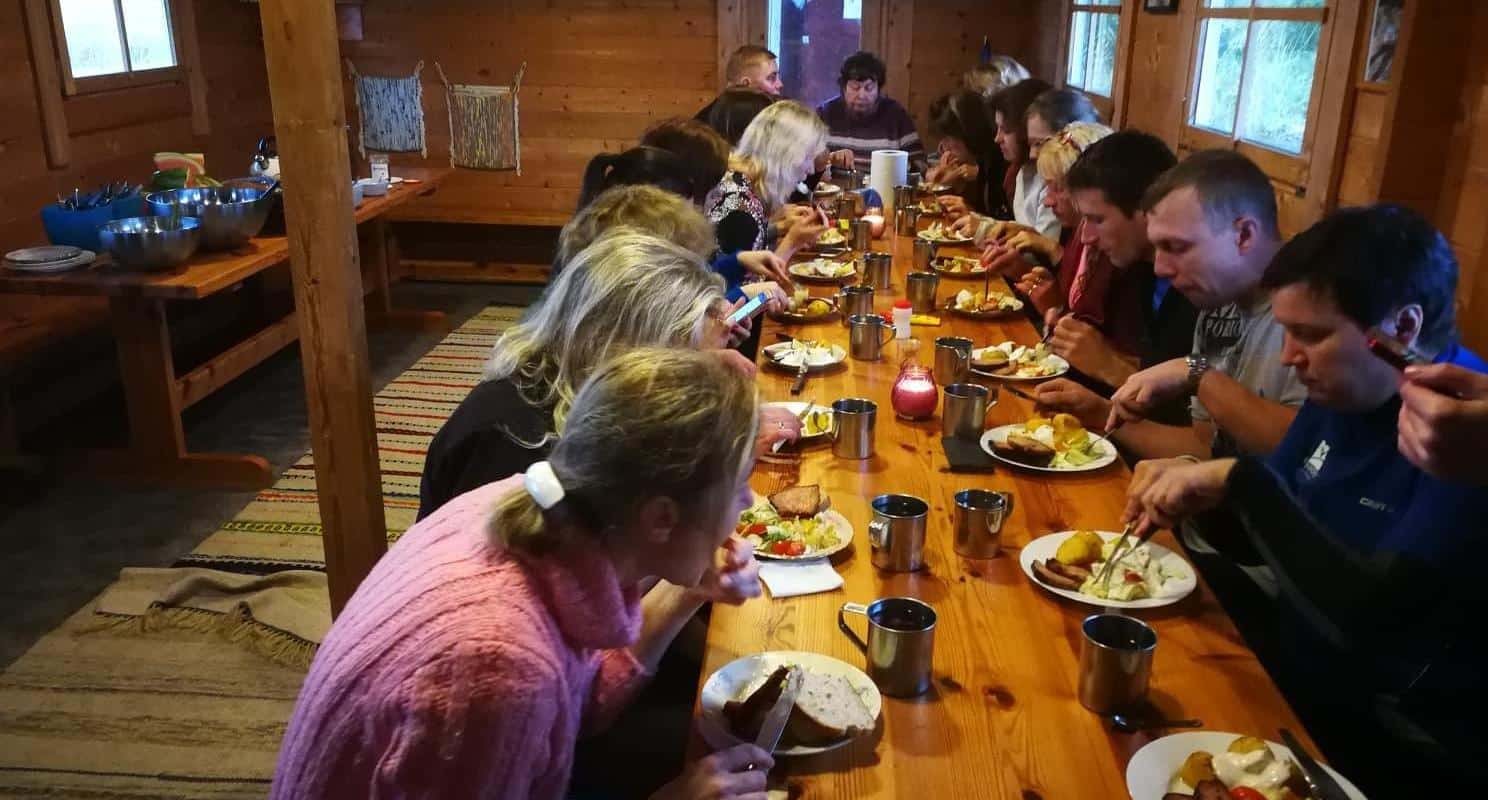 The floating house is suitable for a holiday in Estonian nature for both colleagues and families/friends. We offer accommodation for up to 30 people (mattresses and pillows are available). When staying here, be sure to bring a sleeping bag, bath towel, swimwear, your own food, and drinking water. There is electricity (with a generator) and a gas stove in the kitchen with everything you need. The raft house has a sauna and a separate lounge, and canoes and rowing boats can be used.