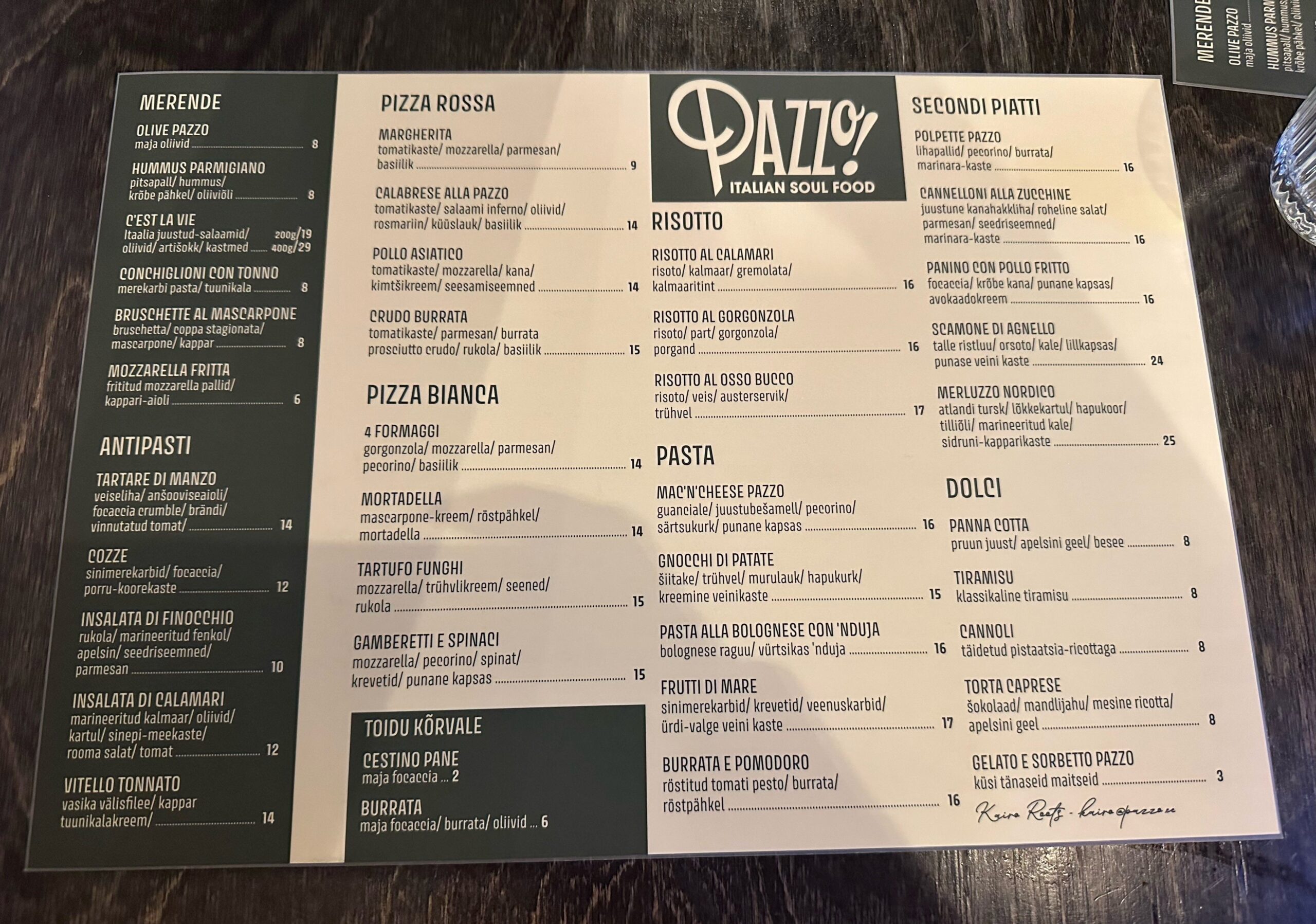 Visit website +372 504 0859 info@pazzo.ee Facebook Instagram Opening times and prices