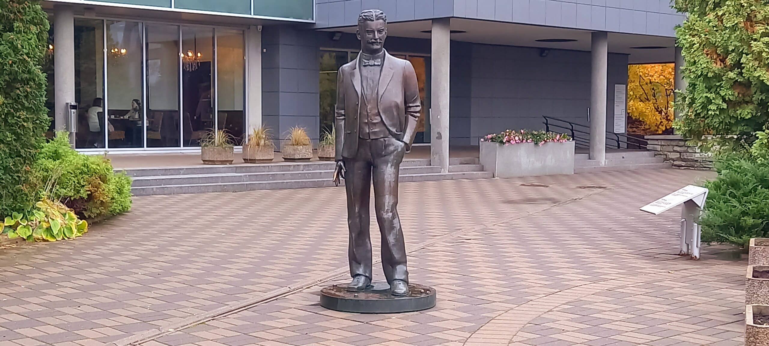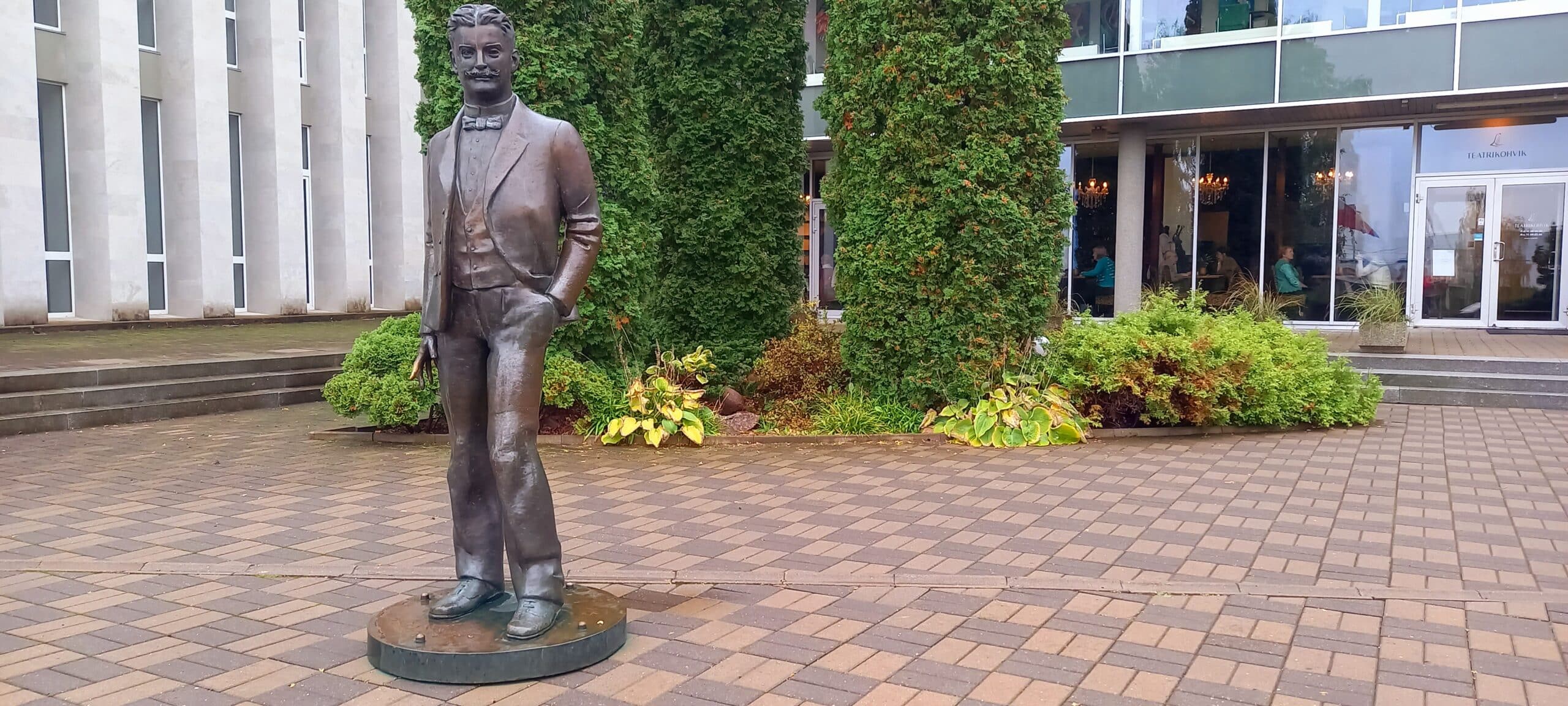 Karl Menning was the founder of professional theatre in Estonia and the first professional theatre and stage director in the country. He was the director of the Vanemuine Theatre from 1906 to 1914. His sculpture was created by Mare Mikoff and is unique for the fact that it can be turned on the spot.