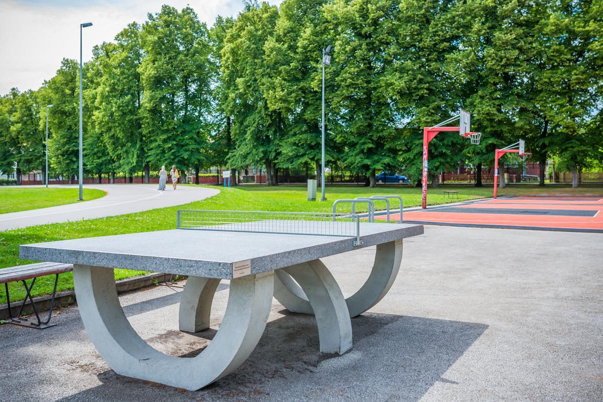 Amateur athletes and all others can use the 1 km running track along the fence, outdoor gym equipment, volleyball and basketball courts, sand court for beach volleyball and the rollerskating, roller skiing and cycling track for free. The stadium building has a gym, a room for aerobics, a gymnastics hall and a running track with a special surface. There is also a large playground on the premises.